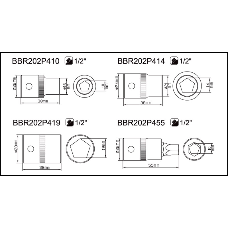 1/2\ 5-kant Steckschlüssel- und Bit-Satz für Handbremsen"